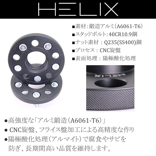 HELIX ハブ付 ワイドトレッドスペーサー 4H PCD100 内径54mm M12XP1.5 マットブラック【2枚セット】