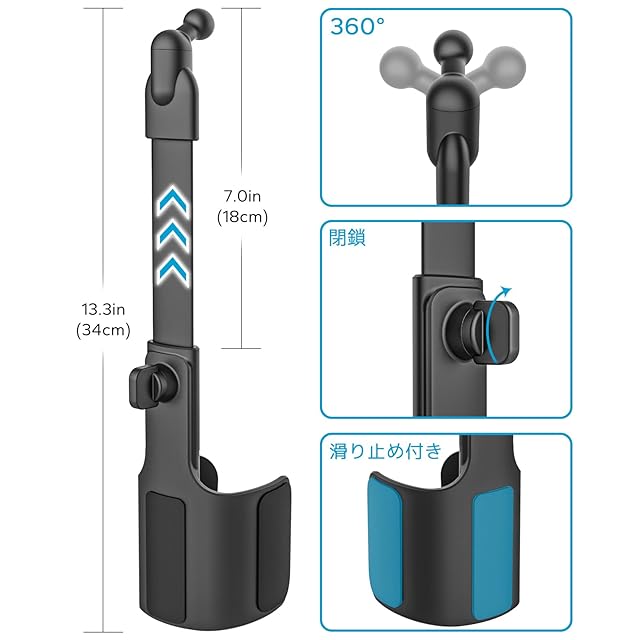 【最適な視角】車載ドリンクホルダーは高さ調節と360°回転機能を備えており、縦向きや横向きのモードでデバイスを視聴できます。運転中にも安全な視角を確保でき、ドライバーと助手席の両方で使用可能です。