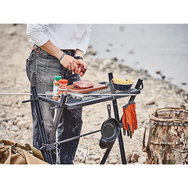 尾上製作所(ONOE) マルチスタンドplus MS-3434 [直火で使用可 ローテーブル ブラック 組立340×340×270mm 天板340×340mm 焚火台 バーベキューコンロ] | primer