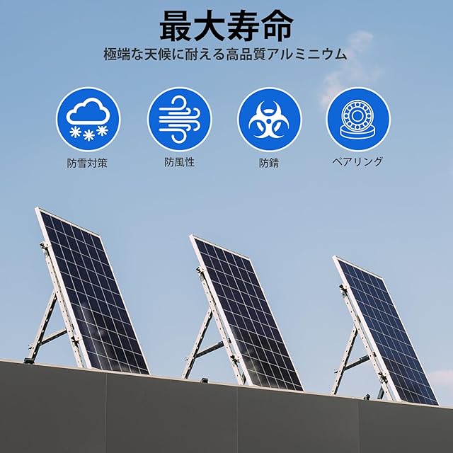 [効率の向上] - 最適なエネルギー生産のためにパネルを太陽に向かって角度を付けることができる傾斜システムで、ソーラーパネルの効率を最大25%向上させます