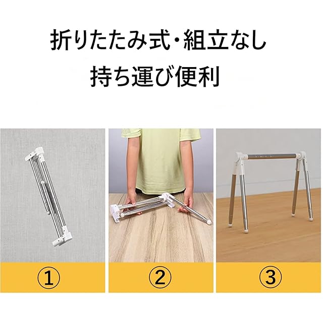 【10秒展開組立なし】組立は工具不要なので、使う時はすぐ使えるんです。使わない時に折り畳み収納可能で、スペースを取らない。収納時の高さは(固定タイプ)約34cm(伸縮タイプ)136cm、スーツケースにも収納できる、出張や旅行用にもぴったり!