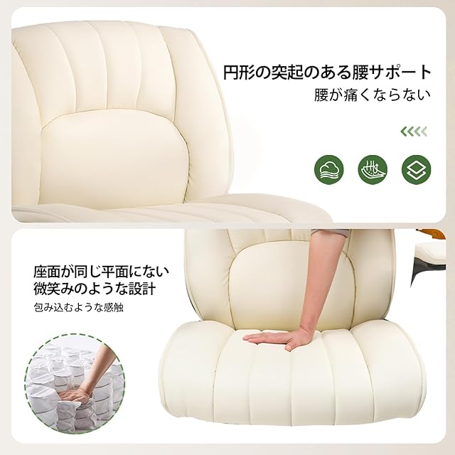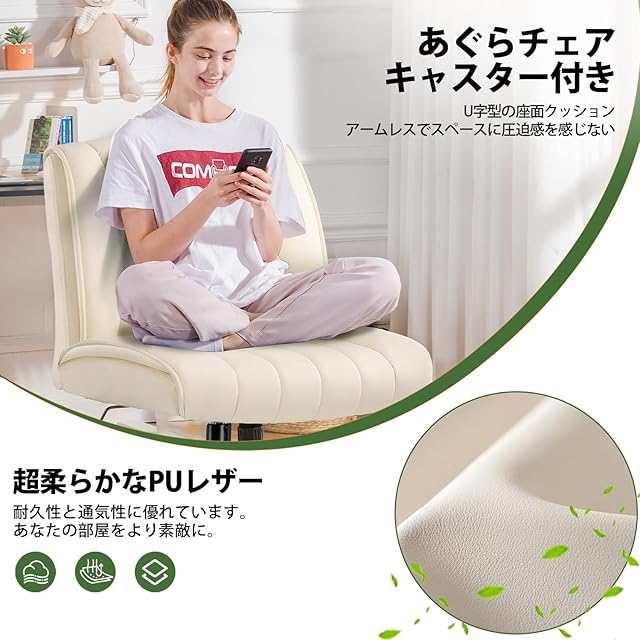 COMHOMA デスクチェア あぐら ソファチェア オフィスチェア 疲れない椅子 90°~130°ロッキング角度 肘掛けなし 座面広い ホイール付き回転 10cm高さ調節可能 PUレザー 軽快な小型のソファ 一人掛け 小さなスペース CH413-BEIGE