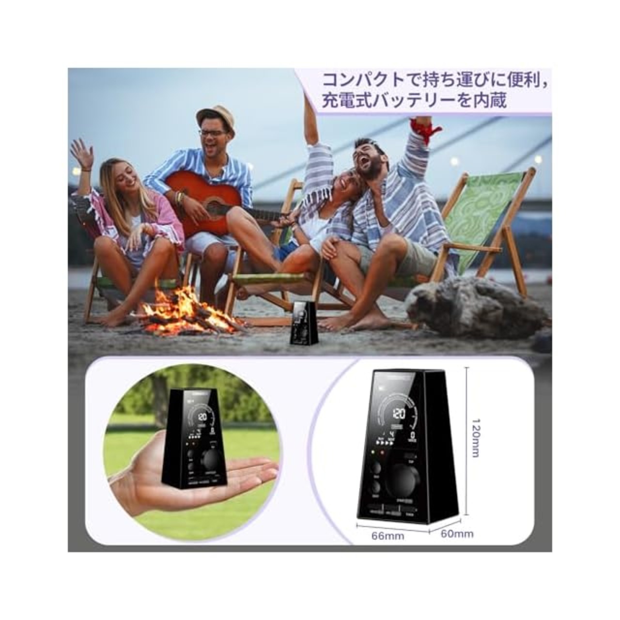 【コンパクト&ポータブル&充電池内蔵】この充電式電子メトロノームは非常にコンパクトで持ち運びが簡単です。また、充電池内蔵しているので、家の外に持ち出しても、野外コンサートに参加しても、外で演奏の練習をしても、電池切れの心配はない。