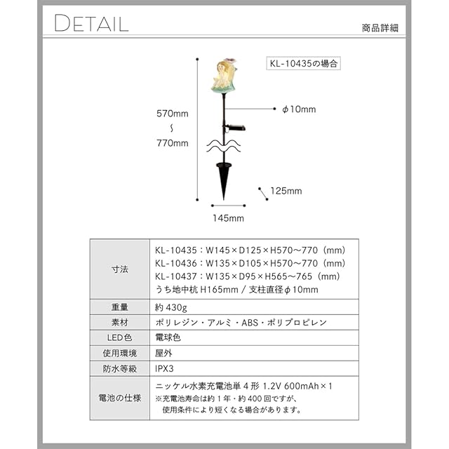 ✅【電池容量】1.2V 600mAh×1 ※約400回充電可能【電池種類】ニッケル水素充電池単4形 ※満充電で1晩最長8時間点灯とし充電池寿命は約1年ですが、使用条件により短くなる場合がございます。