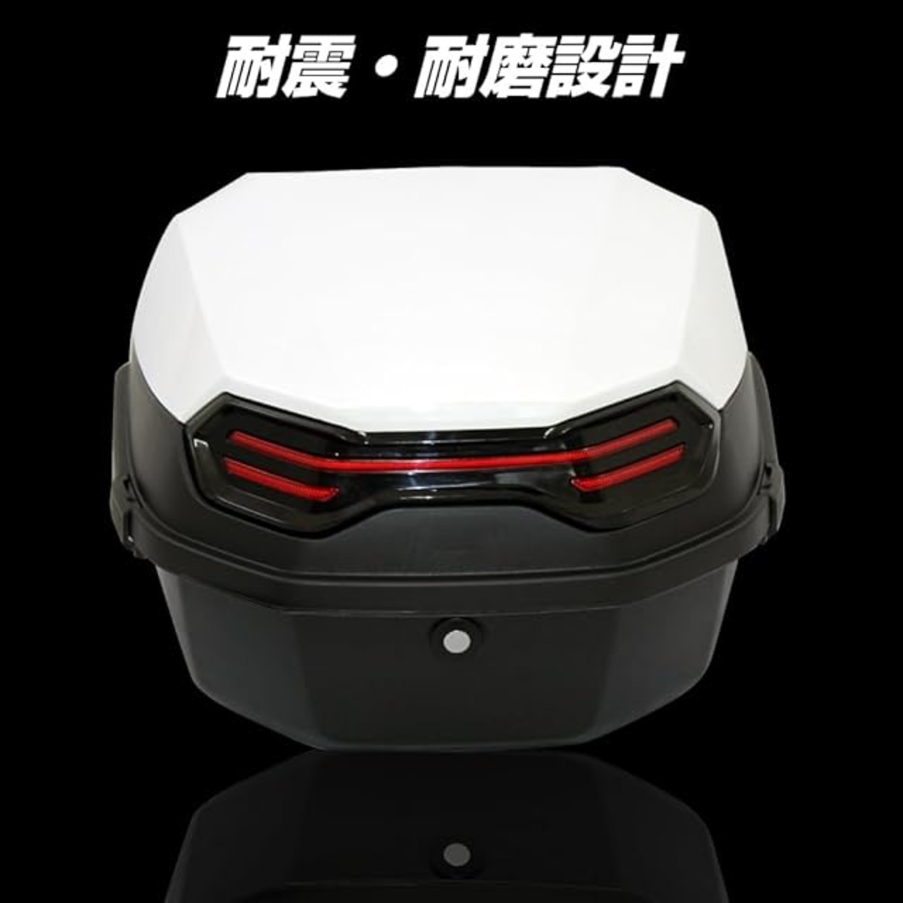 【商品説明】<br>バイク用 リアボックス トップケース 40L ブラック。<br>通勤通学時の必需品!<br>雨具を入れてたりヘルメットを収納したり用途は様々です。<br>カラーはブラック、ホワイト、マットブラックの3種類のカラーが御座います。<br>防水性を考慮した設計ですが、完全防水ではありません。<br>フルフェイスが1個と小物が入る程度の大きさです。<br>※フルフェイスは形状によっては入らない物も御座います。<br><br>【商品仕様】<br>外側サイズ:縦約410mm×横約410mm×高さ約305mm<br>内側サイズ:縦約370mm×横約385mm×高さ約290mm<br>材質:PP(ポリプロピレン)/ABS樹脂<br><br>