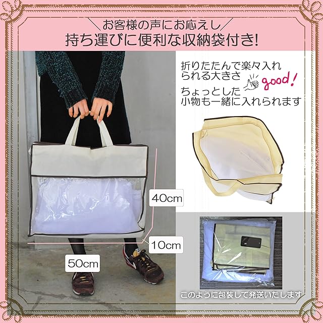 【持ち運びも便利】かさばるパニエを簡単に持ち運びできるようチャック付の手提げが付属しています。余裕のある大きさなので小物なども入れて持ち歩けます。