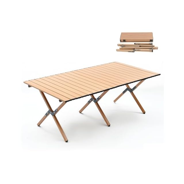 キャンプ テーブル アウトドア 折畳み コンパクト ロールテーブル 組み立て簡単 木目調天板 簡単収納 軽量 傷つきにくい キャップ付き 耐磨耗性 防水 耐熱 手軽に持ち運べる ローテーブル キャンプ用品 120*60*44CM