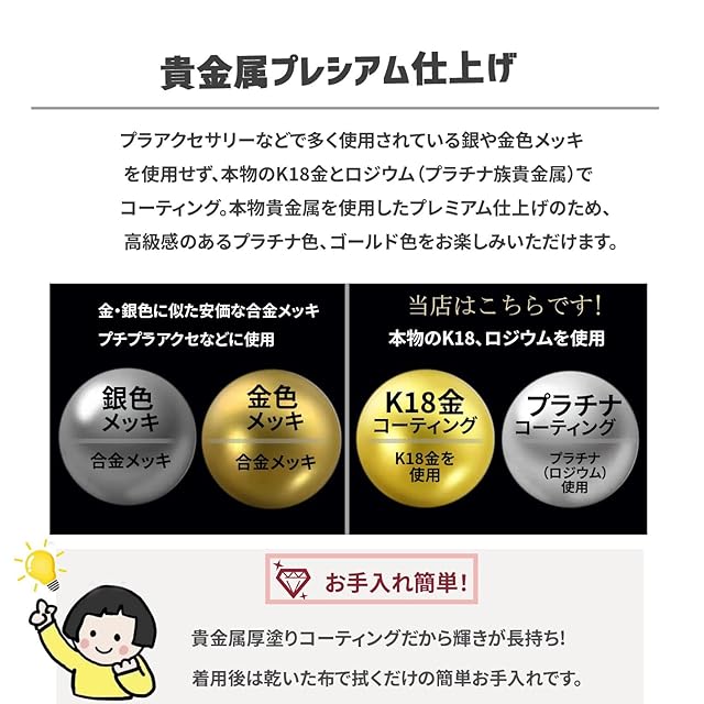 貴金属メッキ:貴金属メッキを施し、独特の光沢と質感を実現。銀本来の軽やかさを保ちつつ、貴金属の豪華さを加えています。このメッキ層により耐摩耗性と耐酸化性が向上し、耐久性が高く変色しにくい仕様となっております。