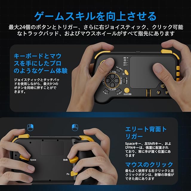 【人間工学に基づいたボタンレイアウトとモディファイアキーによる拡張性】右のジョイスティックで移動、トラックパッドでターゲティング、射撃、ジャンプなど、慎重に配置されたボタンとトラックパッドのおかげで、同時に多くのことを行うことができます。 FNモディファイアーキーの使用により、Dパッドと他のボタンのキーマッピングを変更することができ、あらゆるゲームの要件に応じることができます。