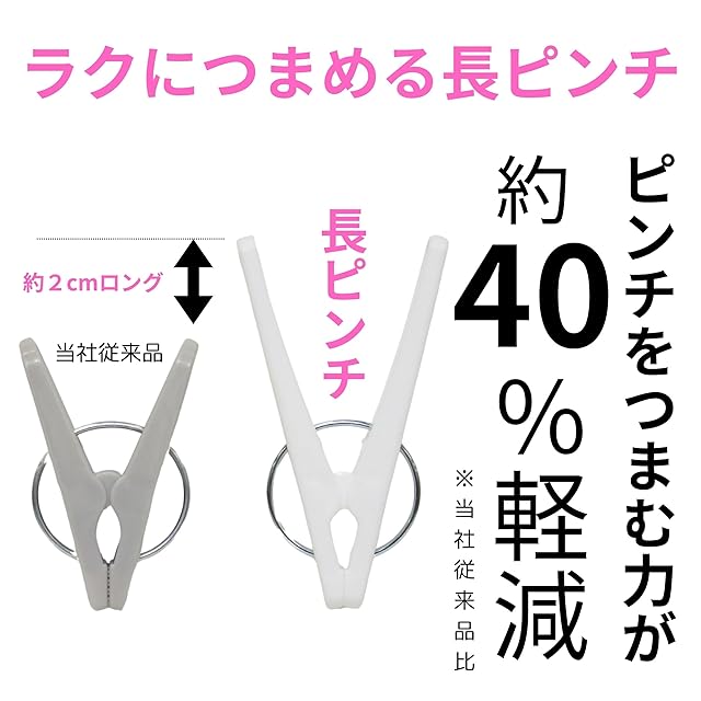 ピンチの持ち手が長いので、軽い力でつまめてしっかりはさめます