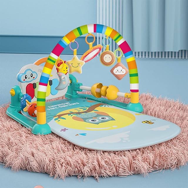 【赤ちゃん用プレイマット】:ベビージムはアーチとおもちゃは取り外しができて、5つのおもちゃ仕掛けでお子様の成長を促すいろいろな遊び方ができます。赤ちゃんが足でピアノを蹴ると音がして運動機能が向上します、優しくてゆっくりとした音楽を流して、赤ちゃんのために楽しい成長雰囲気を作り出します。