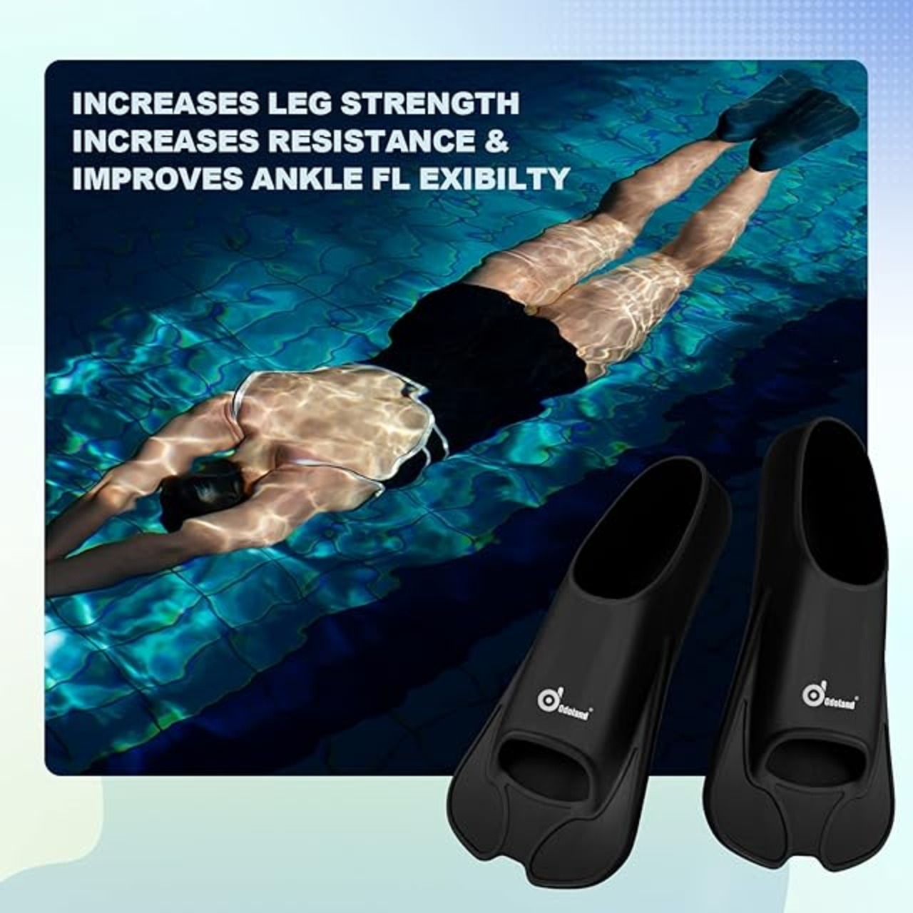 【脚と足首の柔軟性】: トレーニングフィンの短いブレードデザインは、水中での練習中により短くて速いキックを促進し、スピードと持久力を向上させます。