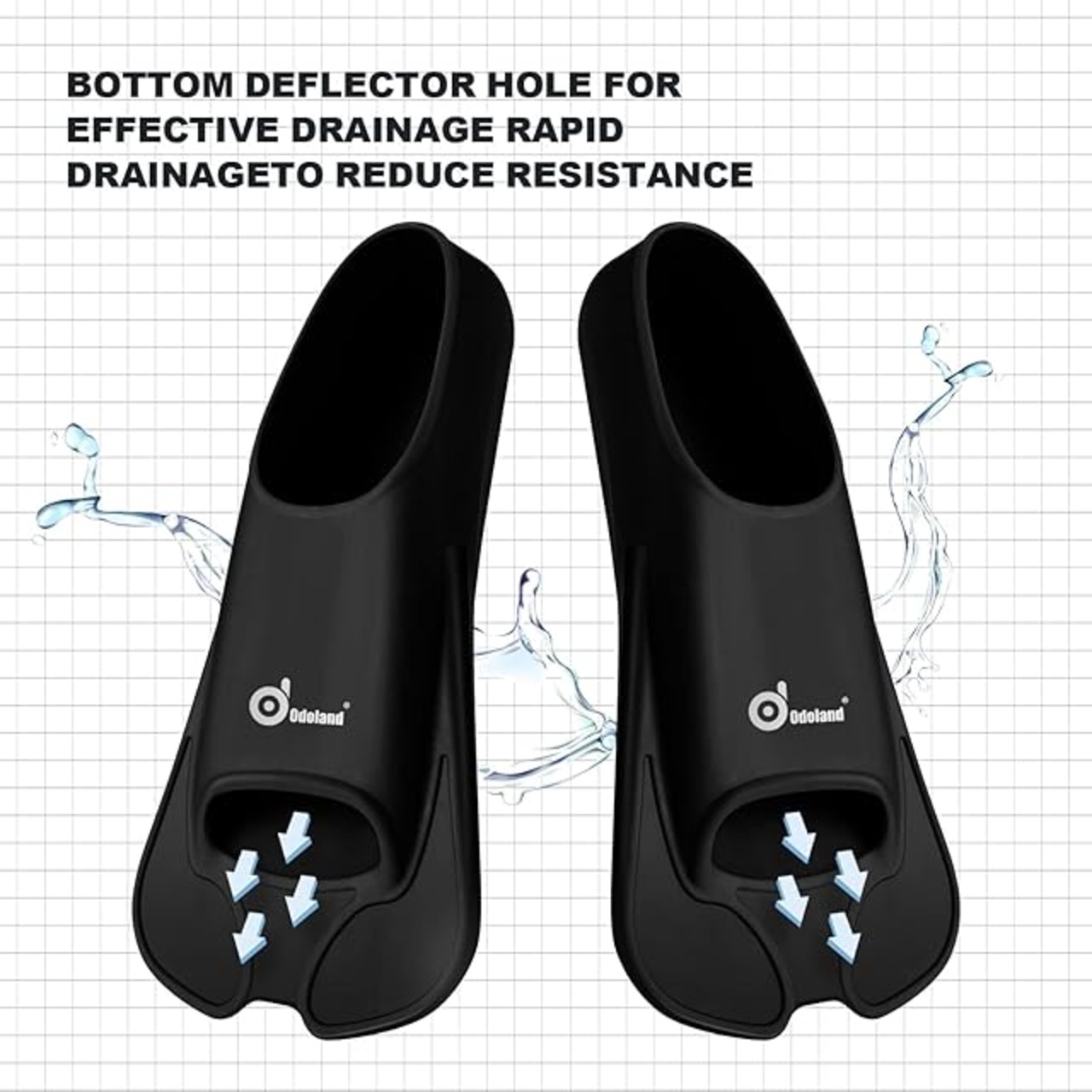 Odoland スイム フィン シュノーケリング フィン ショートブレード フルフット 調節可能 足ひて 足ヒレ 軽量 シリコンフィン ダイビング 水泳 トレーニングフィン 大人用(ブラックM)