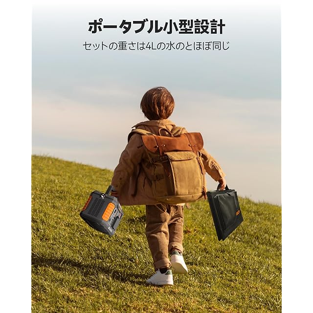 【小型軽量】電源とソーラーパネルのセットの重量は4.1kgで、2本の2Lの水瓶に相当します。折りたたんだ後、ソーラーパネルのサイズはA5紙と同じです。この製品はバックパックに簡単に収納でき、高齢者や子供でも持ち運びが可能で、災害時の緊急避難に非常に適しており、日常使用、屋外活動、車中泊にも便利です。