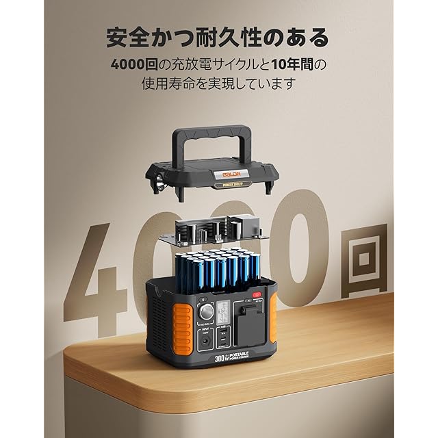 【高い安全性】BALDRは独自の角型リチウム鉄リン酸塩電池を採用し、4000回の充放電サイクルと10年間の使用寿命を実現しています。また、バッテリーマネジメントシステム(BMS)を使用することで、短絡保護/過負荷保護/過熱保護/過電圧保護/過電流機能を有しています。