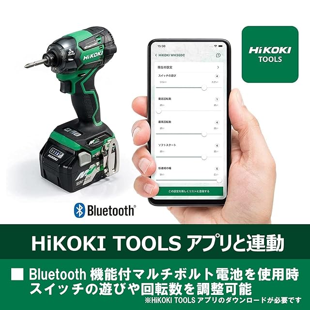 HiKOKI(ハイコーキ) 36V インパクトドライバー WH36DC ストロングブラック Bluetooth付バッテリー2個・充電器・ケース・力こぶビット付き WH36DC(2XPBSZ)
