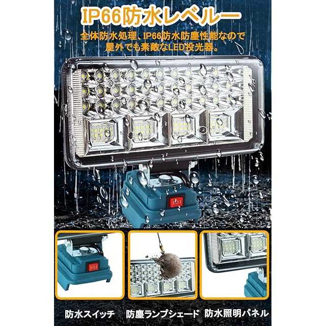 【IP66防水仕様】このLED投光器は高品質な素材で作られており、IP66防水規格に達して、雨の日など厳しい作業条件下でも頼りになる照明を提供します(ご注意:水に浸さないでください)。室内照明ではもちろん、屋外照明、集魚灯、夜間作業、夜釣り、キャップ、停電、防災など様々なアウトドアイベントに最適!外部での作業にも安心です。