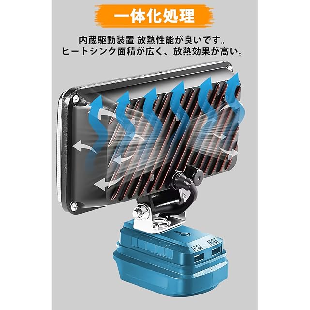 【145°回転・優れた放熱性能による長寿命化】充電式投光器は使用時に0°から145°まで調整可能です。明るさはより広いところを照明し、必要に応じて正確な作業領域に光を集中させることができます。投光器はアルミダイカストヒートシンクを採用し、ランプの熱放散を促進し、高性能かつ効率的な放熱効果を発揮します。長時間使用しても大丈夫です、寿命が長くなります。