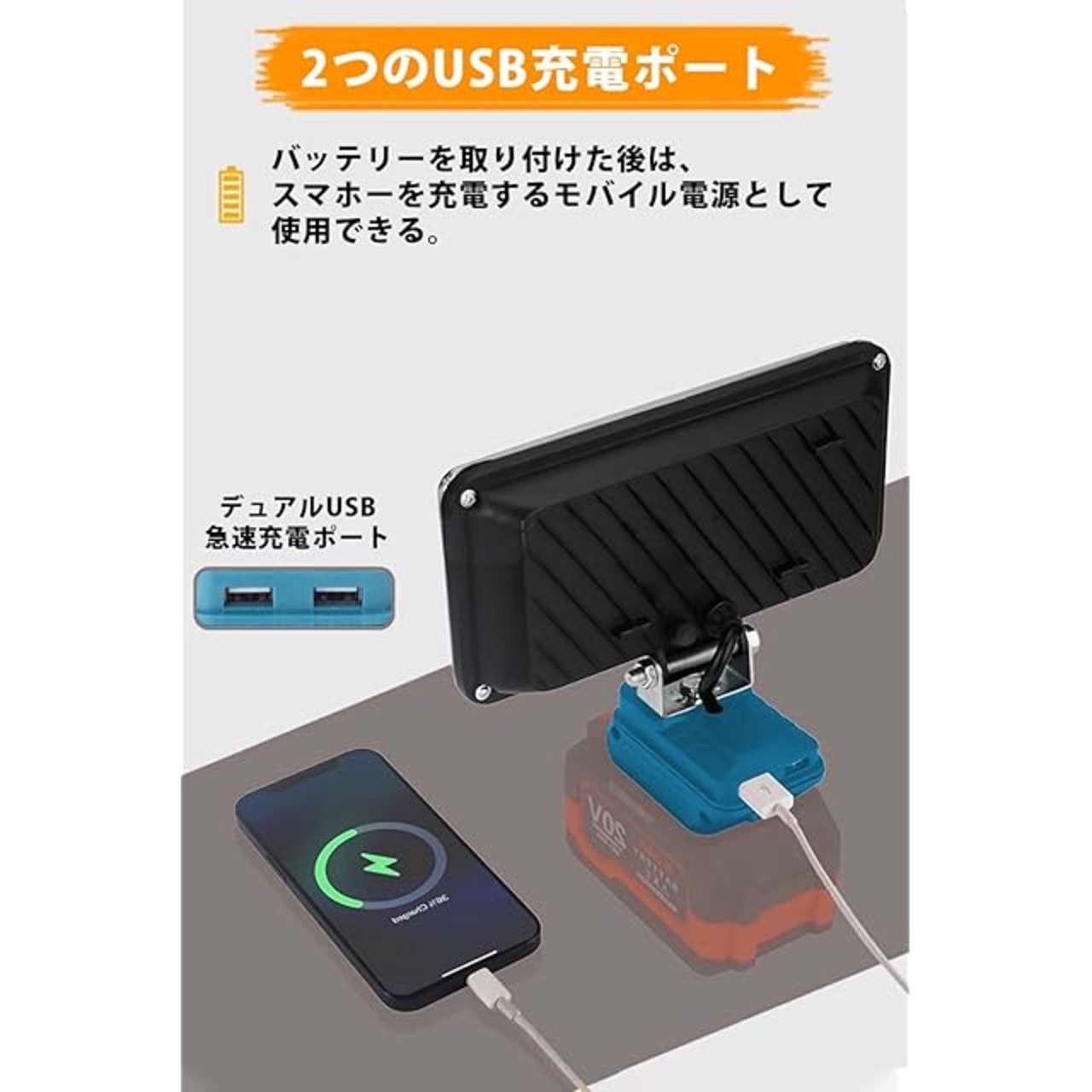 【コードレスLED投光器】 led投光器はライトと明るさの調節が可能で、ニーズに応じてライトの角度や明るさを自由に調節可能です。 2段階の明るさで調整(100%~50%)です。一家に一台あると何にでも使えて便利です。出力充電ポートを(2つ)備え、照明を提供できるだけでなく、充電ニーズも満たすことができます。