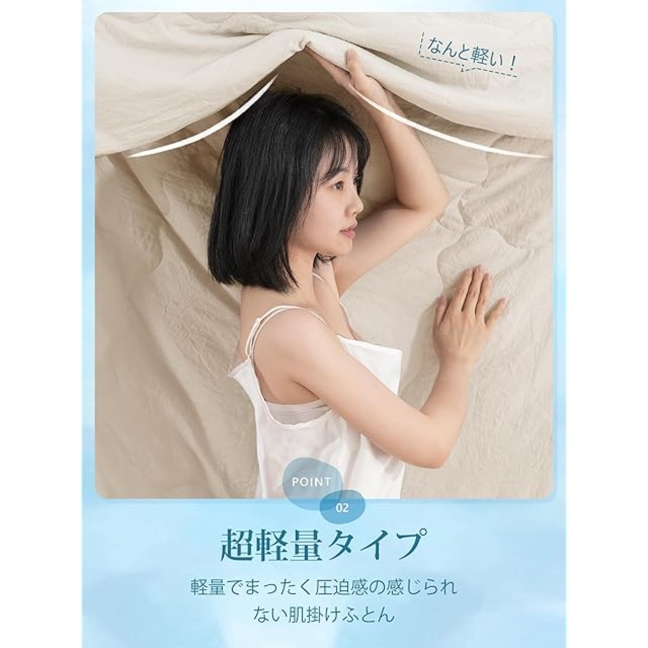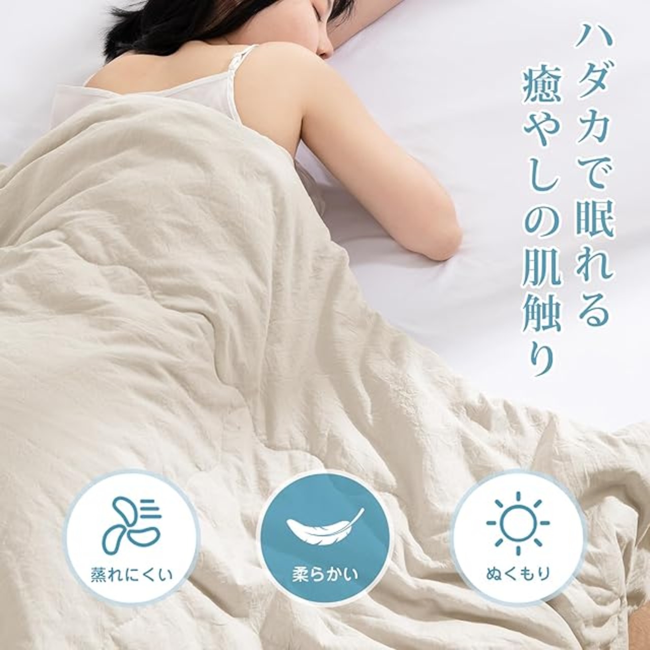 ☁ ふんわり軽い超軽量なので、やさしく体を包み込み、心地よい眠りを誘います。