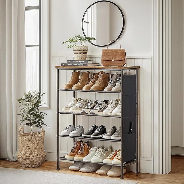 【多用途、省スペース】多機能な収納ラックとして本や小物を整理することもでき、スペースをさらに整頓された状態に保つ。また、靴棚の側面には収納ポケットが付いており、鍵や靴ブラシ、靴クリームなどの小物を収納でき、実用性と便利さが向上する。