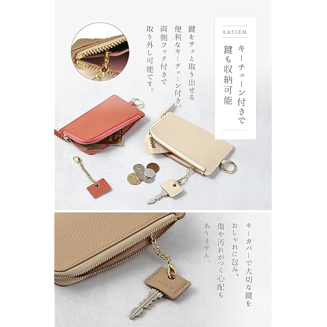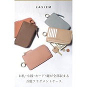 【商品説明】あなたの"マスト"をひとまとめ。LASIEMの本革フラグメントケース。■「シンプルなのに機能的」キーチェーン、L字型ファスナー、内ポケット、コンパクトな設計。小さくてもあなたの必要を満たしてくれます。■「必要最小限をコンパクトに」・カード×7枚・小銭×15枚・鍵×1本・お札×5枚これだけ入りました!■「L字型ファスナー採用で大開口」大きく開くので、必要なものを入れた状態でも中身がしっかり見えて、取り出しも楽々です。■「鍵も収納可能」鍵をサッと取り出せる、便利なキーチェーン付き。両側フック付きで取り外しが可能です。■「おしゃれに守ります」キーカバーで大切な鍵をおしゃれに包み傷や汚れが付く心配もありません。■「あると安心の内ポケット」免許証や保険証などあなたの大切なアイテムをしっかりと収納できます。■「気分高まるバイカラー」内外で異なる質感の牛本革を使用しました。程よく目を惹くバイカラーで、開く度に気分上昇。■「きらめくゴールドパーツ」パーツは全てライトゴールドで統一程よい華やかさを演出し、女性らしさをより引き立たせます。■「お札は二つ折りで収納」二つ折りで入るためケースが分厚くならずセルフレジなど、お札の読み込みエラーが減りストレス無くお会計ができます。■「そのままピッ」カードを入れたまま、決済や交通系ICの使用が可能です。■「カラビナリング付き」バッグやスマホショルダーストラップなど他のアイテムへの取り付けが簡単にできます。【製品仕様】 ●サイズ 縦:約8cm 横:約14cm 厚さ:約1.8cm●重量 約75g●素材 牛本革 ファスナーカラー:ゴールド