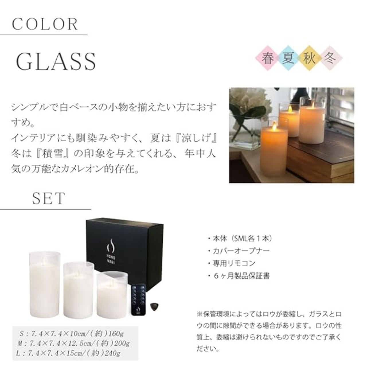 HONONARI LEDキャンドルライト 大中小3点セット 専用リモコン付 間接照明 Glass