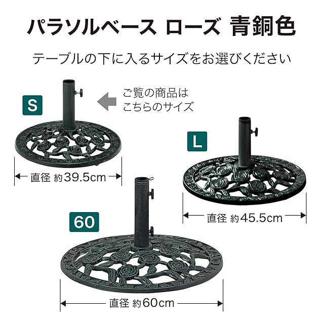 タカショー 日よけ ベース パラソルベース 青銅色 ローズ S ガーデン ファニチャー アンティーク スタイル 鉄鋳物 スチール製 バラのモチーフ 鋳鉄 スチール ポリプロピレン PAB-21SRV | primer