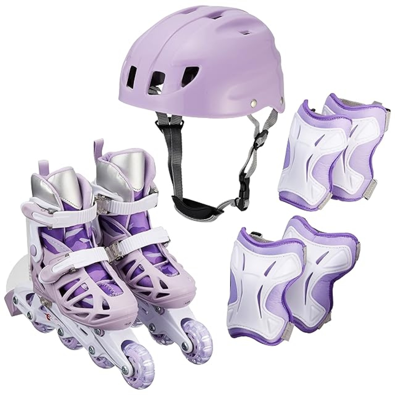 製品安全協会(SGマーク)適合品、工具を使わず簡単にサイズ調整できます【セット内容】インラインスケート、ヘルメット、エルボーパッド、ニーパッド、2か所のバックル簡単着脱。プロテクターは、ゴムでサイズ調整。マジックテープで簡単に着脱できます。