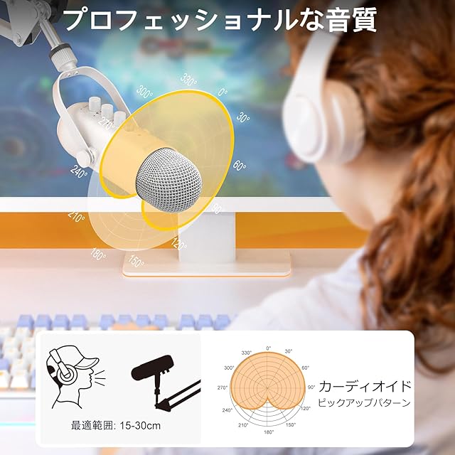 ZeaLSound USBマイクセット、コンデンサーマイク、PCマイク、アームスタンド付属、カーディオイド指向性、プラグアンドプレイ、ワンタッチミュート、エコー機能、ゲーミングマイク、YouTube/Zoom/Tiktok録音、ゲームプレイ、ライブ配信、ASMR、リモートワーク、オンライン会議に最適、i*Phone/Windows/MacOS/PS4/PS5に完全対応(白)
