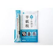 ・熊野筆が2本ついた「水でお習字半紙板」です。墨の変わりに水を付けた筆で半紙をなぞると、 黒の色がでます。 ・色の付いている方に、水をつけた筆で書くと、書いたところの色が変ります。 3分程度すると、書いた文字が乾いて消えてゆきます。水を使うので、汚れず後片付けも簡単です! ●何回でも乾かして練習出来ます。 ●水で書くので手や服を汚しません。 ●書いた文字が消えたらまた練習出来ます。 ●お絵描きにも使えます。 ●伝統工芸品 熊野筆のためし書きにも。