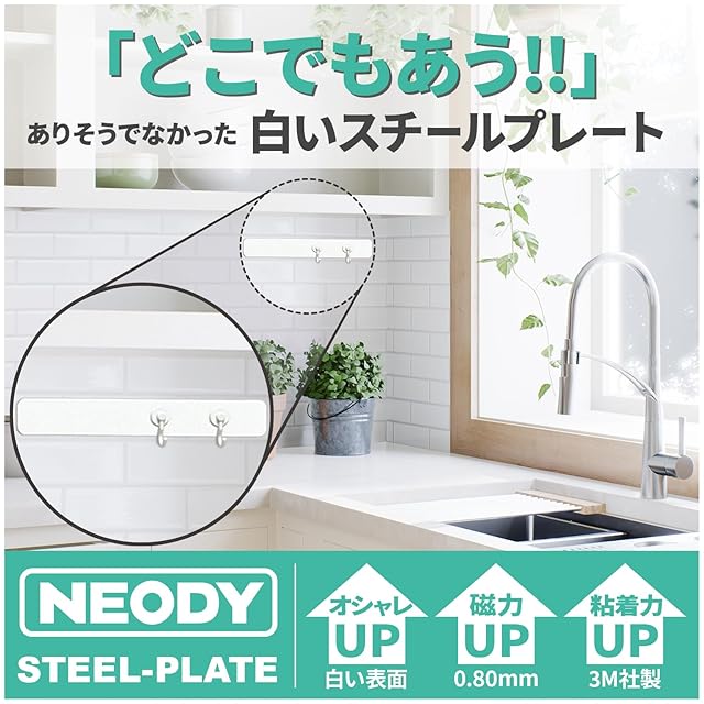 ✅【 壁から落ちる心配なし 】 従来の スチールプレート の 厚さ0.40mm の2倍の厚さ0.80mmを実現し、 マグネット の 磁力 を最大化しました。また 粘着シート も 3M 社製の最高級の 粘着シート を採用しました。 磁力 と 粘着力 を最大化することで、壁から マグネット が落ちたり、 スチールプレート が落ちる心配がなくなりました。