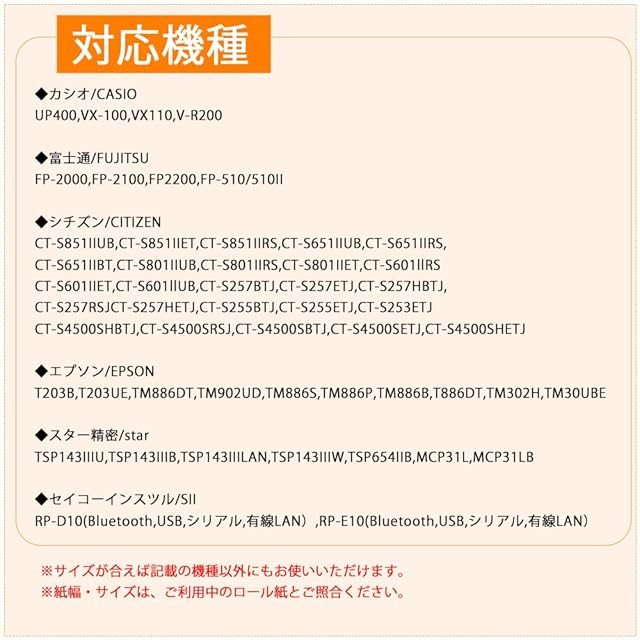 ロールの直径80mm スター精密・TSP100III/mc-Print3、エプソン・TM-T88VI/ TM−m30など、小型プリンタに対応。 Airレジ,Airペイ,Square,STORES(旧:Coiney),スマレジなど各レジアプリ、UberEats対応。