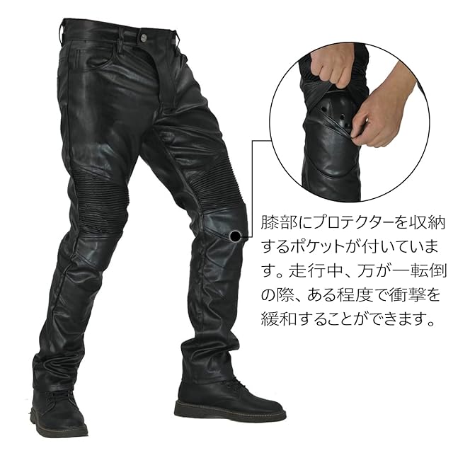 [RENHE] バイク レザーパンツ メンズ ライディングパンツ プロテクター ライダースパンツ 革パンツ バイク ストレート フェイクレザー PU革 防風防水 ブラック XLサイズ | primer