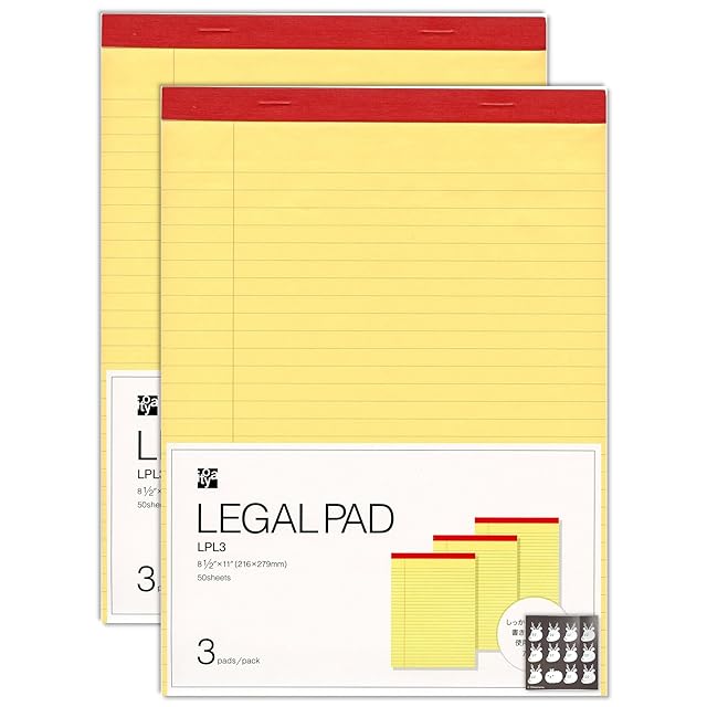 【計6冊セット】伊東屋 リーガルパッド Lサイズ(A4変形) 横罫 ノートパッド メモパッド 216x295mm LPL3 イエロー 3冊パック x2個 おまけThanksステッカー付 | primer