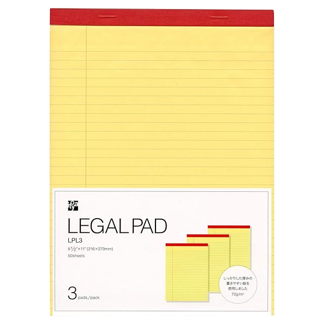伊東屋が提供する「リーガルパッド Lサイズ」は、ビジネスや学習に最適なメモパッドです。横罫タイプで、効率的に情報を整理しやすく、イエローの用紙が視覚的に目立ちます。3冊セットで、オフィスや家庭での複数用途に対応可能。マイクロミシン目入りで簡単にページを切り取ることができ、立ちながらでも書きやすい堅牢なデザインが特徴です。