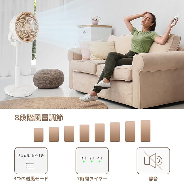【DCモーター&静音】DCモーターで、「静かさ」と「省エネ」の面で圧倒的に優れています。風を直線に集中させ、最大の送風距離は9Mで、普通の扇風機よりも風が強くて涼しい気分が早く味わえます。空気循環、部屋干しと衣類乾燥など様々な場面で活躍できます。