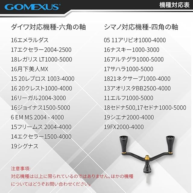 シマノの対応機種(四角の軸のハンドルにしてください) : 05 11 アリビオ 1000 - 4000 , 16 ナスキー 1000 - 3000 , 09 アルテグラ 1000 - 5000 , 17 サハラ 1000 - 5000 , 18 ネクサーブ 1000 - 4000 , 13 アオリスタ BB 2500 - 4000 , 11 エルフ 1000 - 5000 , 18 セドナ 500 , 17 セドナ 1000 - 5000 , 15 セドナ 1000 - 4000 , 19 シエナ 2000 - 4000 , 19 FX 2000 - 4000 などシマノ供回り式リール
