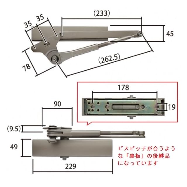 左右兼用です!! 【 L1X11 NHN の後継品】【 152SPT NHN の後継品】クリエラシリーズ用 ドアクローザ ドアクローザー TOSTEM/トステム/トーヨーサッシ/LIXIL用 内付枠用 ブロンズ色