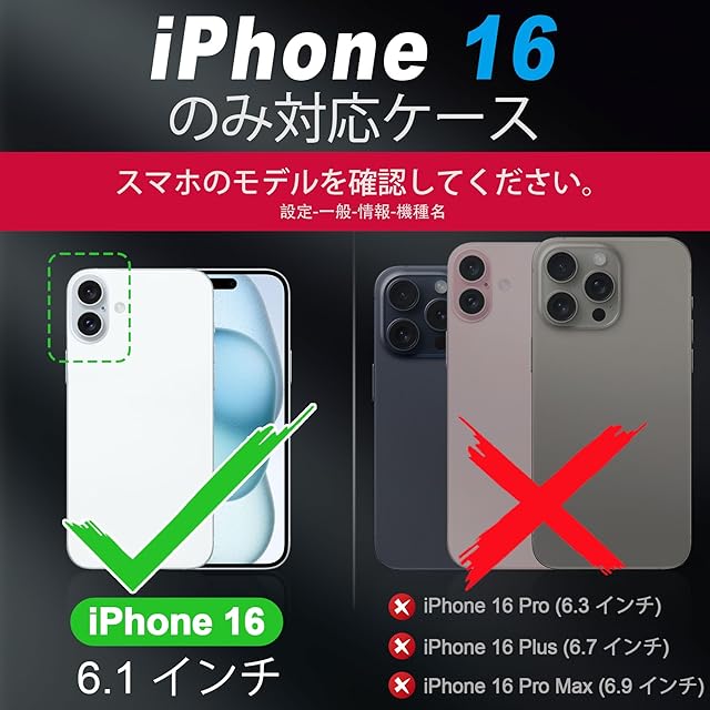 【対応機種・型番確認】iPhone 16(6.1インチ、2024年発売)のみに対応しておりますが、他の型番が併用できません。注文する際に間違いないようご確認頂ければ幸いです。万が一商品に初期不良・破損などがある場合、注文履歴画面より出品者にご連絡お願い致します。