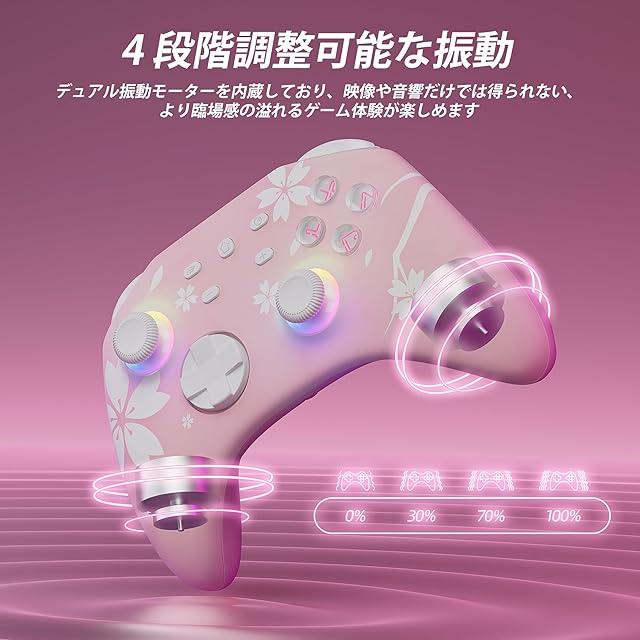 Mytrix Switch コントローラー 無線 スイッチコントローラー ホール効果スティック (ドリフトなし) Switch プロコン Bluetooth5.0接続 RGBライト 自動連射機能 背面ボタン付き マクロ機能 6軸ジャイロ 4階段HD振動 スリープ解除 Switch/Lite/有機ELモデル/PC/Steam Deack/iOS/Android 全対応 桜柄ピンク仕様