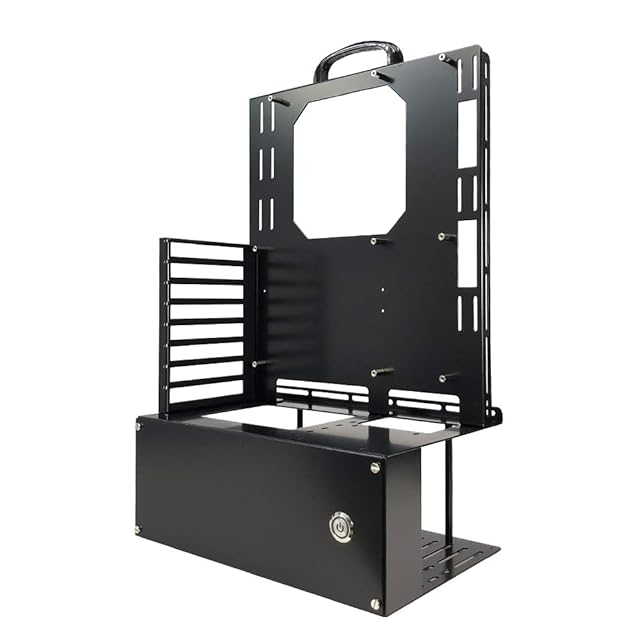 持ち運びも可能な取っ手付き。パーツ検証用としてもおすすめです。水冷クーラー用の取付穴を搭載(ラジエーター対応サイズ 120mm / 140mm / 240mm / 360mm)。