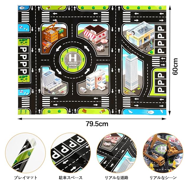 【プレイマット】プレイマットは表面が滑らかで、簡単に折りたたんで保管できます。または、複数の交通道路と駐車スペース、複数の遊び方を備えたさまざまな現実的なシナリオを提供します。