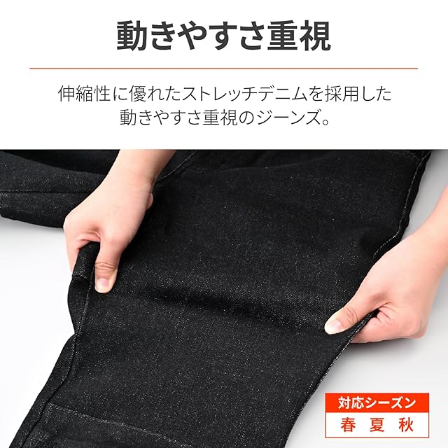 伸縮性に優れた13ozのストレッチ生地を採用し、動きやすさと快適さを重視