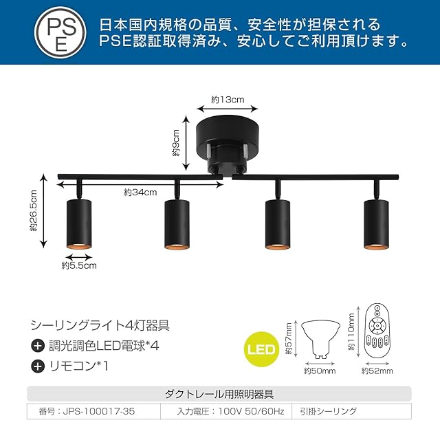 【器具+LED電球】 材質:アルミニウム。取付:引掛シーリング式。 器具はE11口金です。LED電球は700LM(調光可能) 、消費電力は6W(60W形相当) 、色温度は2700-6500K(調色可能)です。