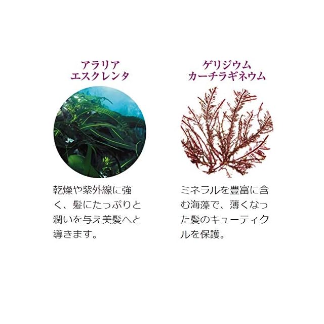 【海藻のエキスで髪に潤いを】世界中の25,000種から製品ごとに選んだ、アミノ酸やミネラルを多く含む海藻のエキスを配合しています。