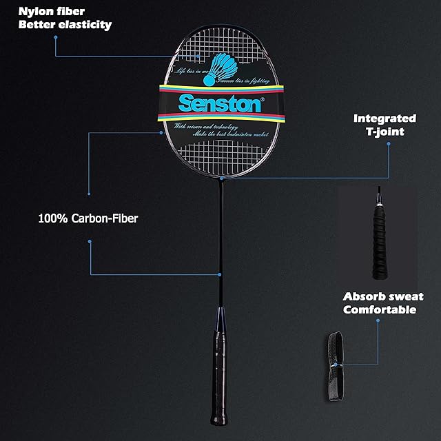 ✔ 100%フルカーボンファイバー素材:Senston N80はフルカーボンファイバーフレームとシャフトで作られています。 ラケットの重量は75グラムで、軽量です。 バドミントンゲームをより長く楽しむことができ、他の重いラケットによる肩の痛みはありません。 プレイすると落ちやすくなります。 カーボンファイバー素材がラケットの強度を高め、フレームが変形するリスクを軽減します。