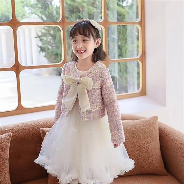 [Vinemsals] 入学式 女の子 スーツ フォーマル ワンピース 2点セット 子供服 フォーマルスーツ ポレロ ドレス 発表会 卒園式 スーツ ガールズ 韓国風 可愛い 洋服 蝶結び チュールスカート ふわふわ 女児 結婚式 卒業式(110,ピンク1秋冬)) | primer