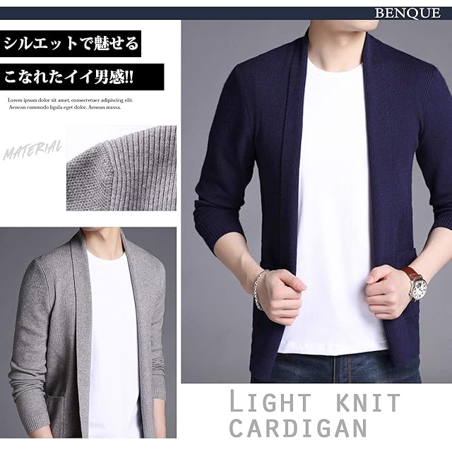 ・いつものコーディネートに羽織るだけで雰囲気を格上げしてくれる、使い勝手の良いライトニットカーディガン。<br> 流行に左右されず1枚持っていれば即戦力間違いなしなアイテムです。<br> <br> ・程よいタイト感で上品なシルエット。ベーシックで使いやすいブラック、グレー、ネイビーの3色展開となっております。<br> <br> ・カジュアルなコーディネートにも使いやすく、落ち感のある襟元のデザインでタンクトップやTシャツはもちろん、<br> Yシャツやハイネック等とのレイヤードもおすすめです。<br> <br> ・デニムやチノパンなどにはもちろん、オフィスカジュアルにもお使い頂け、ちょっとした防寒対策やリモート会議などにもおすすめです。<br> <br> ■素材:ポリエステル<br> ■カラー ブラック、グレー、ネイビー<br> ■サイズ:M,L,XL<br> <br> 着丈 /肩幅/胸囲<br> [M] : 69 / 44 / 52<br> [L] : 71 / 46/ 54 <br> [XL] :73 / 48 / 56<br> <br>