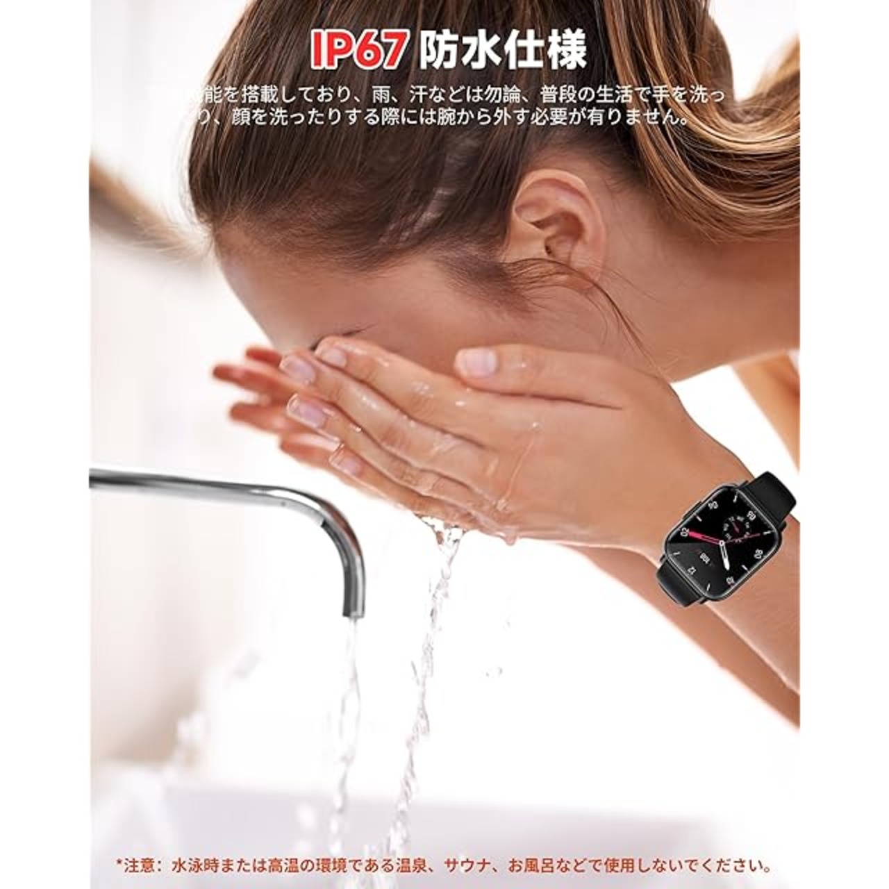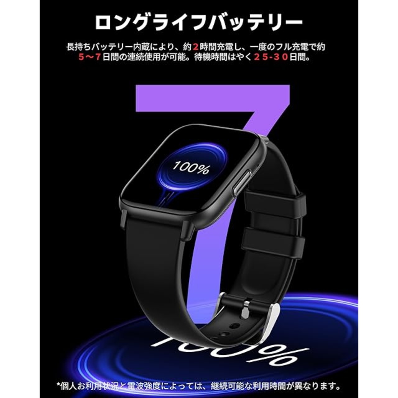 ⌚「バッテリー持ち&IP67防水」スマートウォッチは230mAhのバッテリーが内蔵、1回のフル充電で最大3-5日連続使用でき、頻繁に充電する必要ではありません。スマートウォッチを充電台に入れて端子に接続すると充電開始となります。(人々の使い方により、バッテリーの消耗も異なります)また、スマートウォッチはIP67級の防水性能を持っており、日常生活の手洗いや洗顔の際も取り外す必要ありません。(ご注意:※お風呂、温泉水及び高い水圧は回路基板の損傷が不良故障となります。)